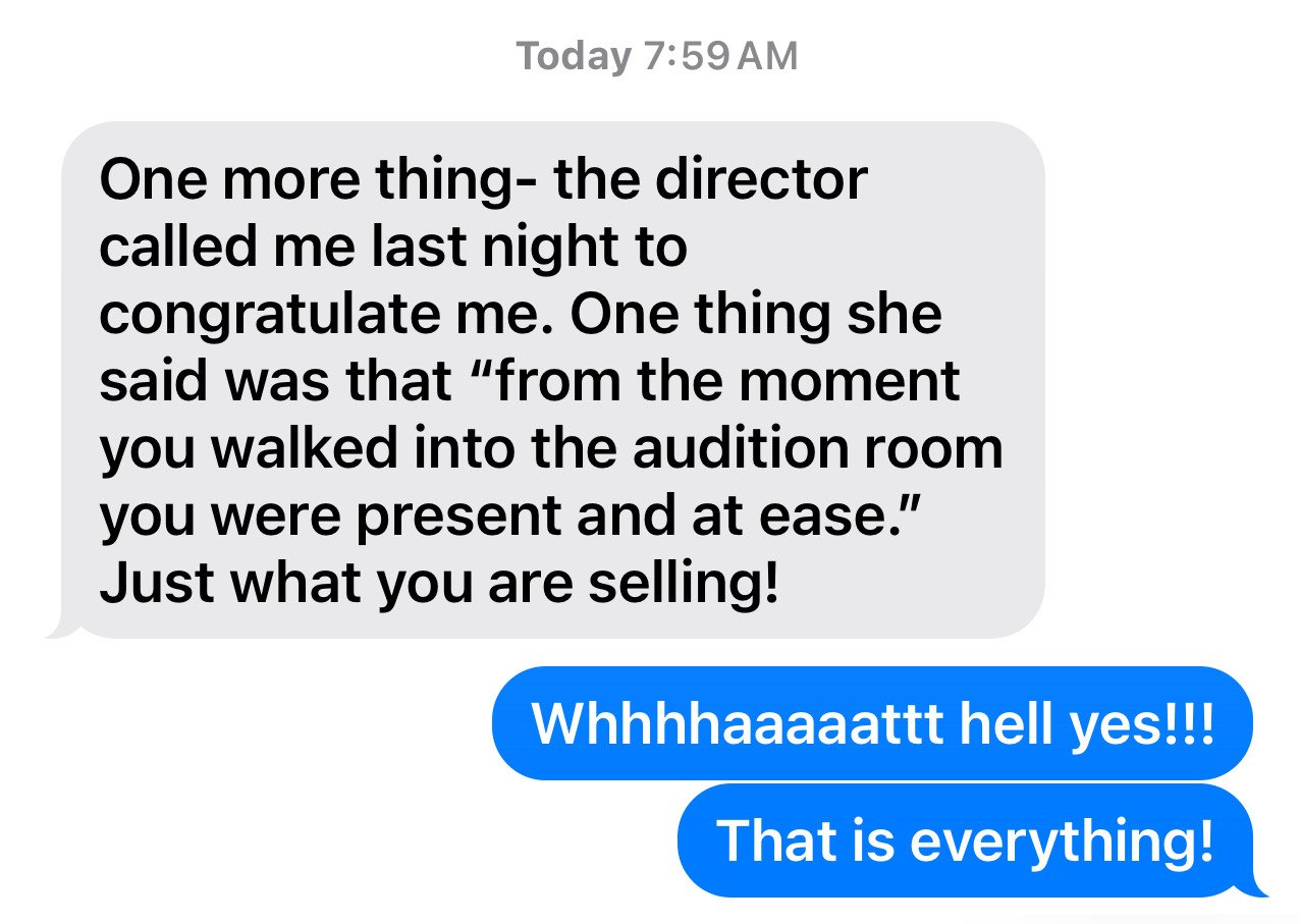You’ll learn to recognize when your body is sabotaging your performance and to regulate your nervous system so you can walk into any room (audition, opening night, interview) grounded, confident, and fully present and leave knowing you brought your best work… because that’s how you keep booking.